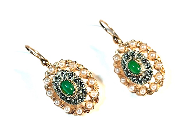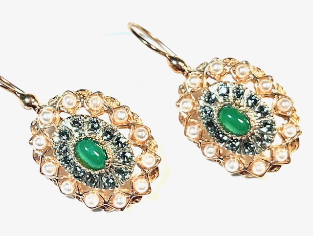Hook earring in 925 sterling silverplaccato gold rosè 18 kt with micro pearls, swarowski and agate green.