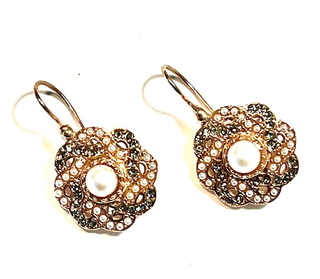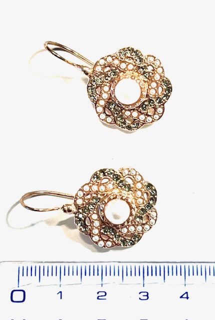 Stud earring in 925 sterling silverplaccato rose gold 18 kt, with pearls of fiume, swarovski and radice of smeraldi.