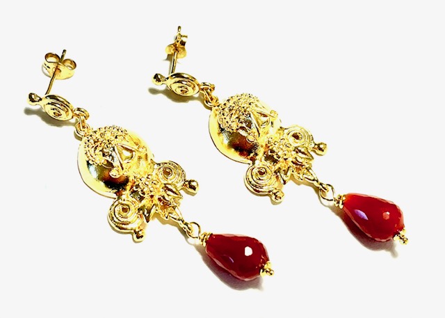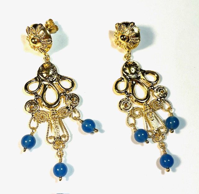 Stud earring in 925 sterling silverplaccato 18k gold with semi-precious stones.