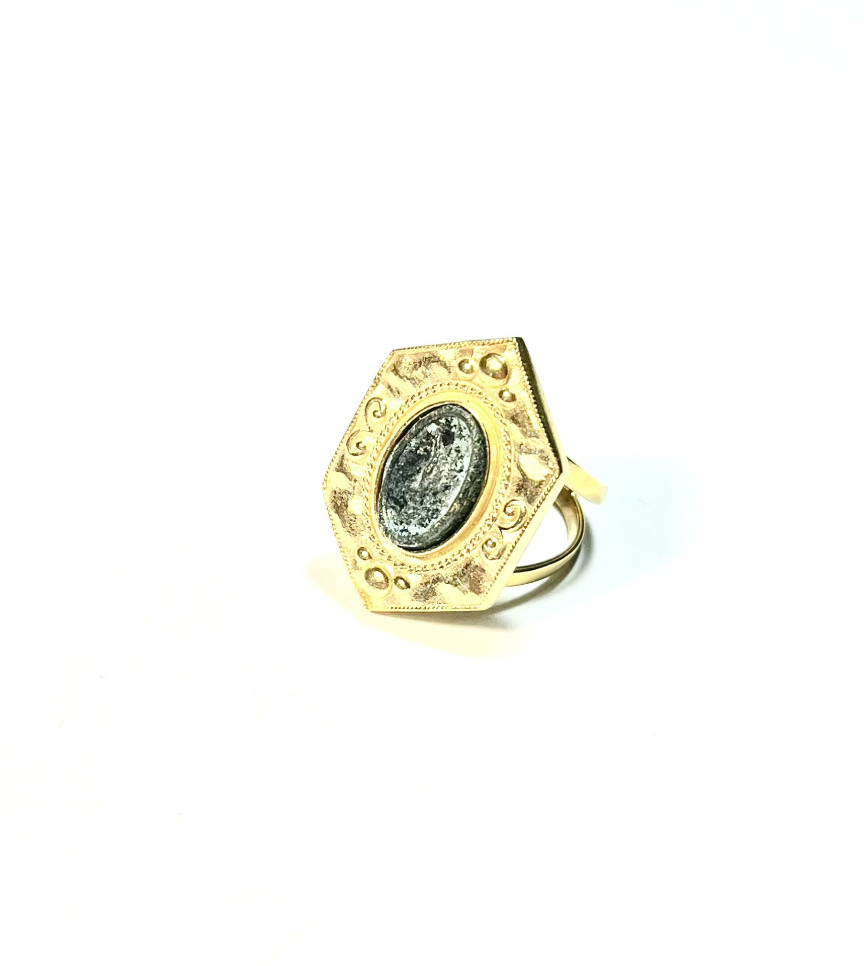 Ring in 925 sterling silverplaccato 18k gold, with antiqued bronze coin.