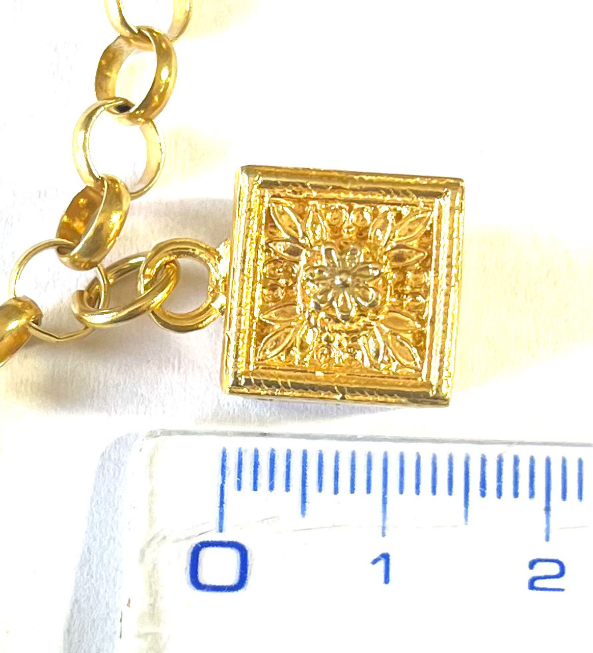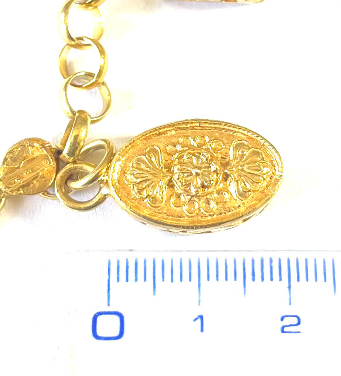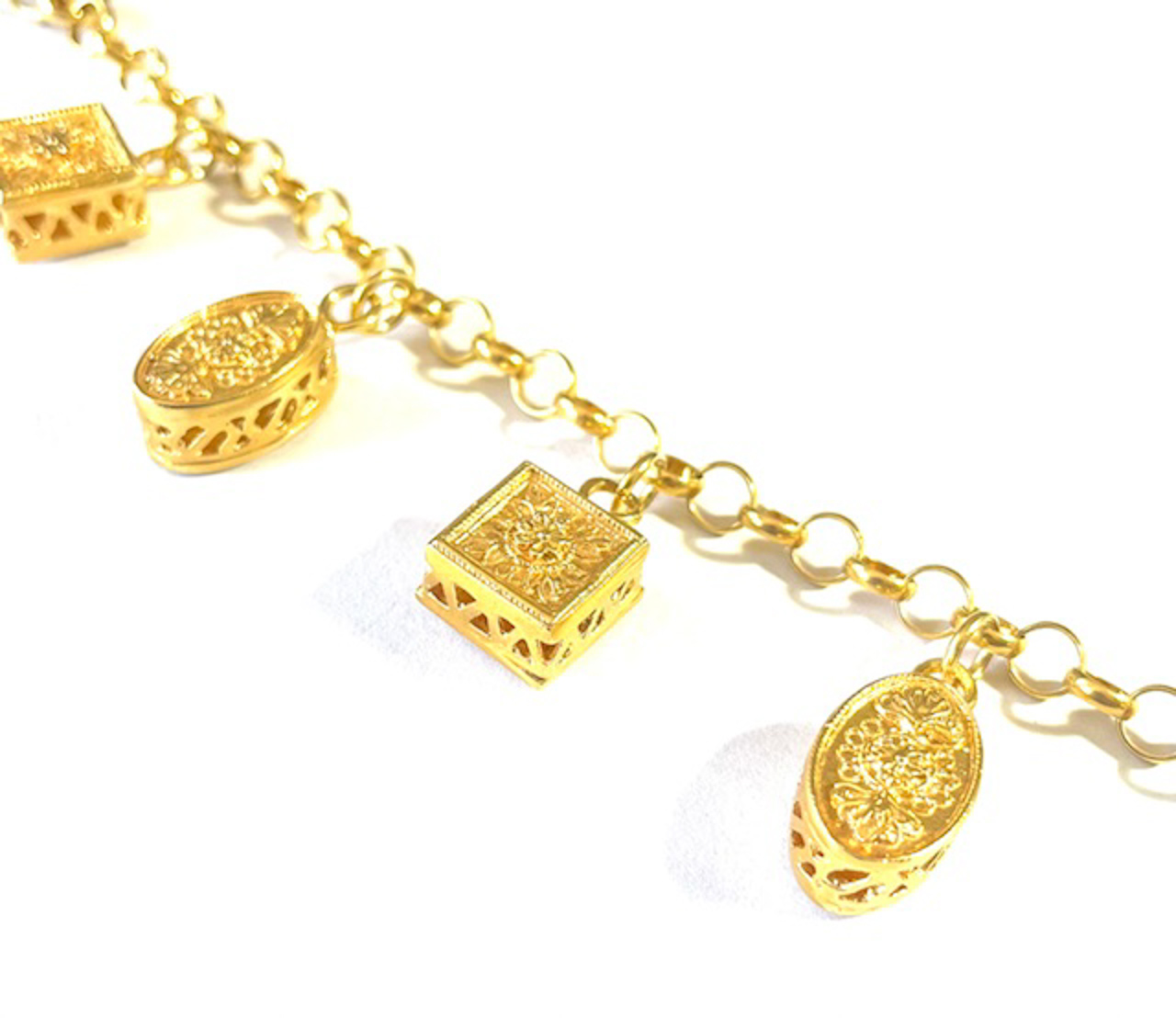 bracciale etrusco ispirato a questa civiltà. la sua struttura è composta from una chain articolata, impreziosita from elementi quadrati and ovali che si ripetono in modo armonioso, creando un effetto of movimento and dinamicità. gli elementi decorativi, simili a piccoli bauletti scatolati, sono finemente lavorati with superfici incise o cesellate, richiamando le tecniche orafe dell’epoca. questi dettagli donano al gioiello una straordinaria profondità visiva and raffinata, rendendolo non solo un accessorio of pregio, ma anche un autentico omaggio all’arte etrusca. perfetto for chi ama gioielli dal fascino antique, ricchi of storia and simbolismo.