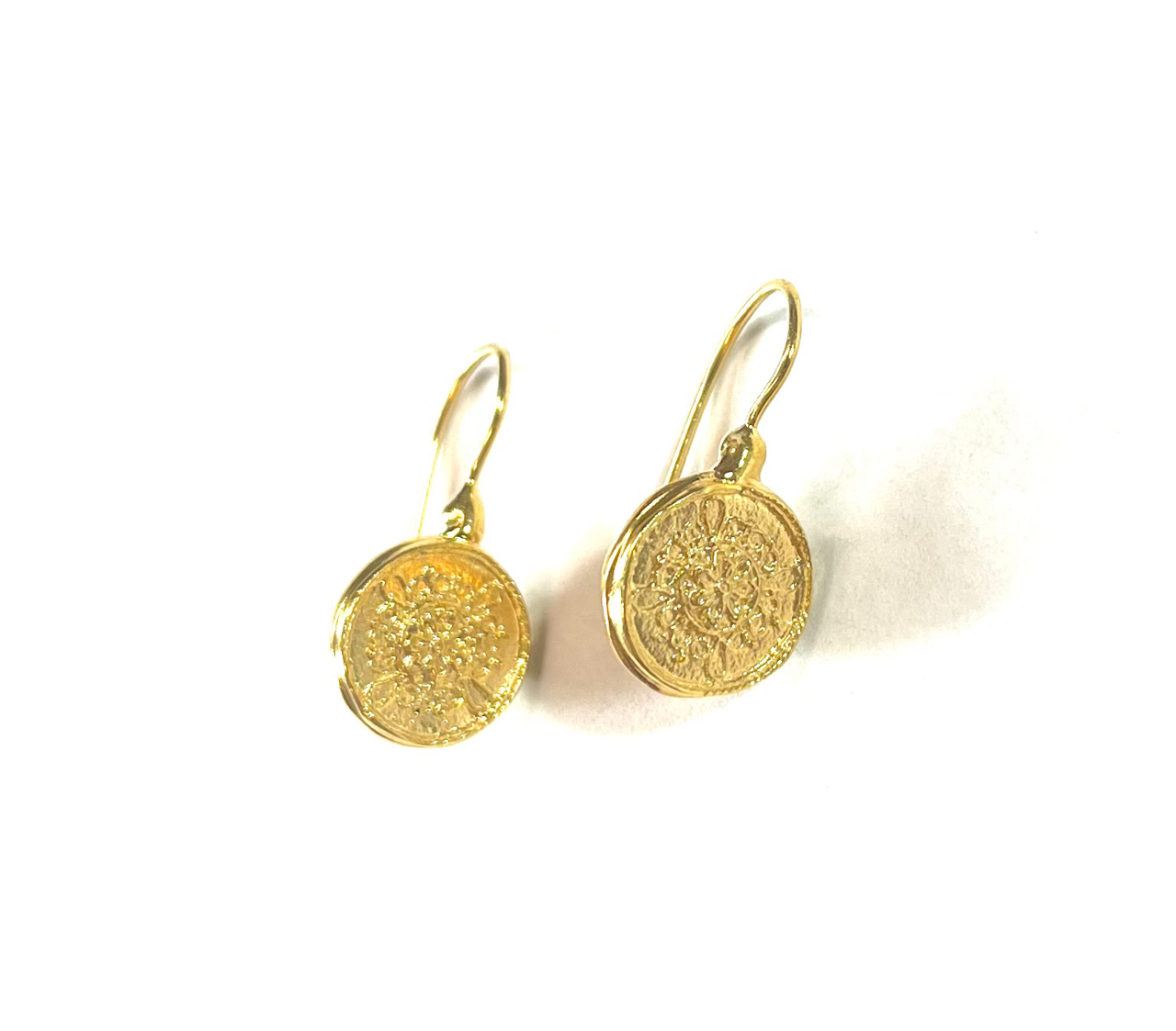 Hook earring in 925 sterling silver/°° 18k gold plated. earring in stile etrusco with motivi floreali, realizzato with la tecnica della microfusione. un gioiello elegante che richiama l’arte orafa antica, esaltando la bellezza dei dettagli floreali in un design sofisticato and raffinato.