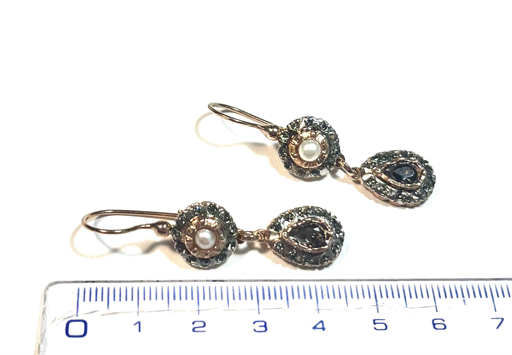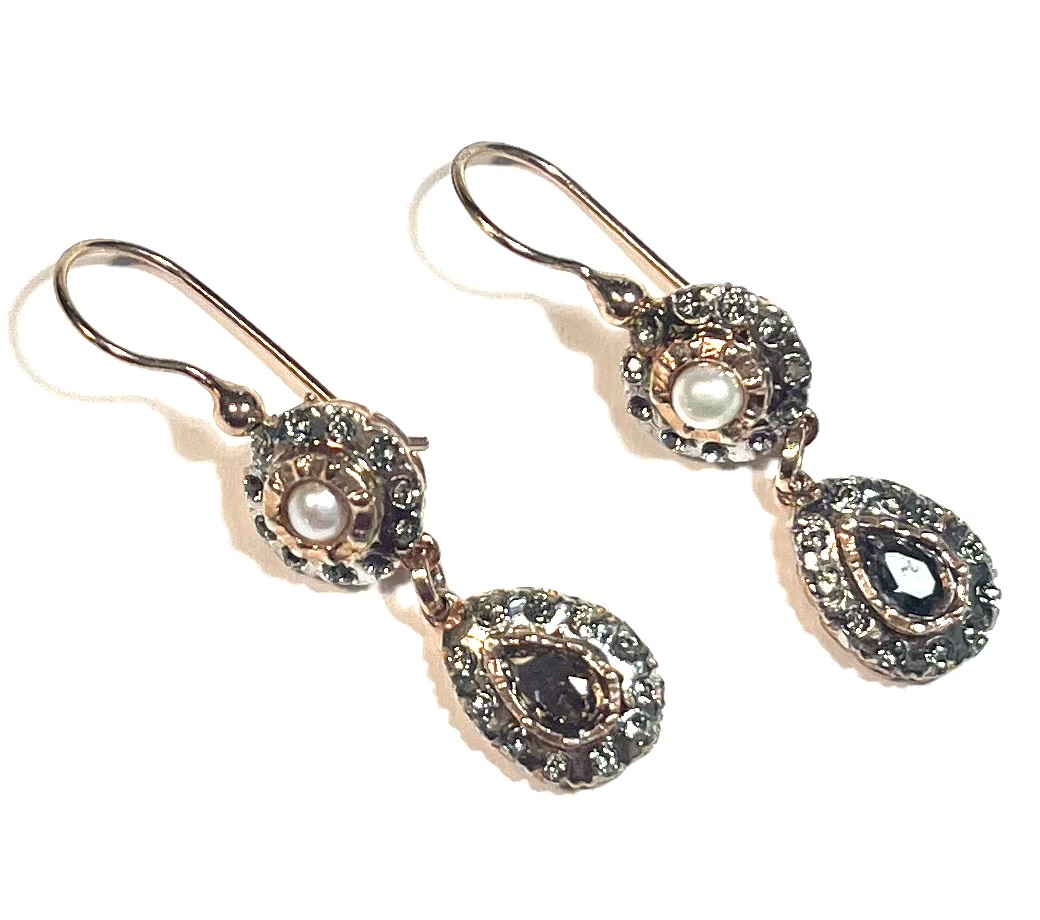 Hook earring in 925 sterling silverplaccato gold rosé with swarovski fumé and pearls of fiume.