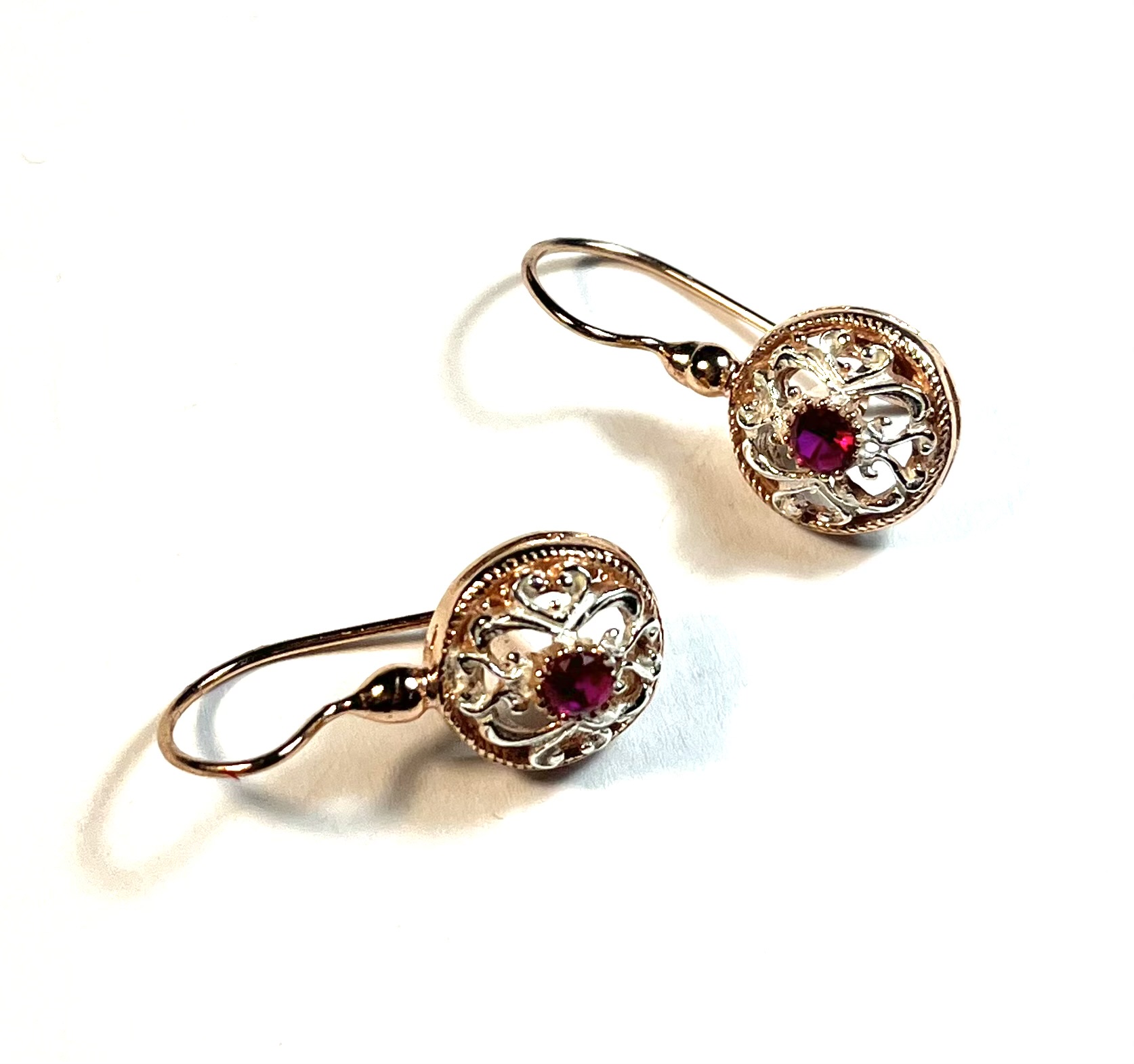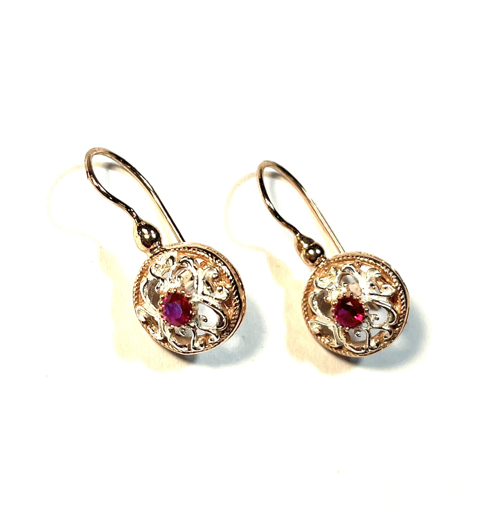 Hook earring in 925 sterling silverplaccato gold rosé 18 kt with stones idrotermali rosse. un gioiello of raffinata leggerezza, questo earring traforato si distingue for i suoi eleganti elementi sinuosi in silver white, che creano un gioco armonioso of pieni and vuoti. al centro, un castone ospita una luminosa stone idrotermale red, che cattura lo sguardo and dona un tocco of color vibrante. un contrasto sofisticato che valorizza ogni dettaglio, esaltando la bellezza del design and la femminilità of chi lo indossa.