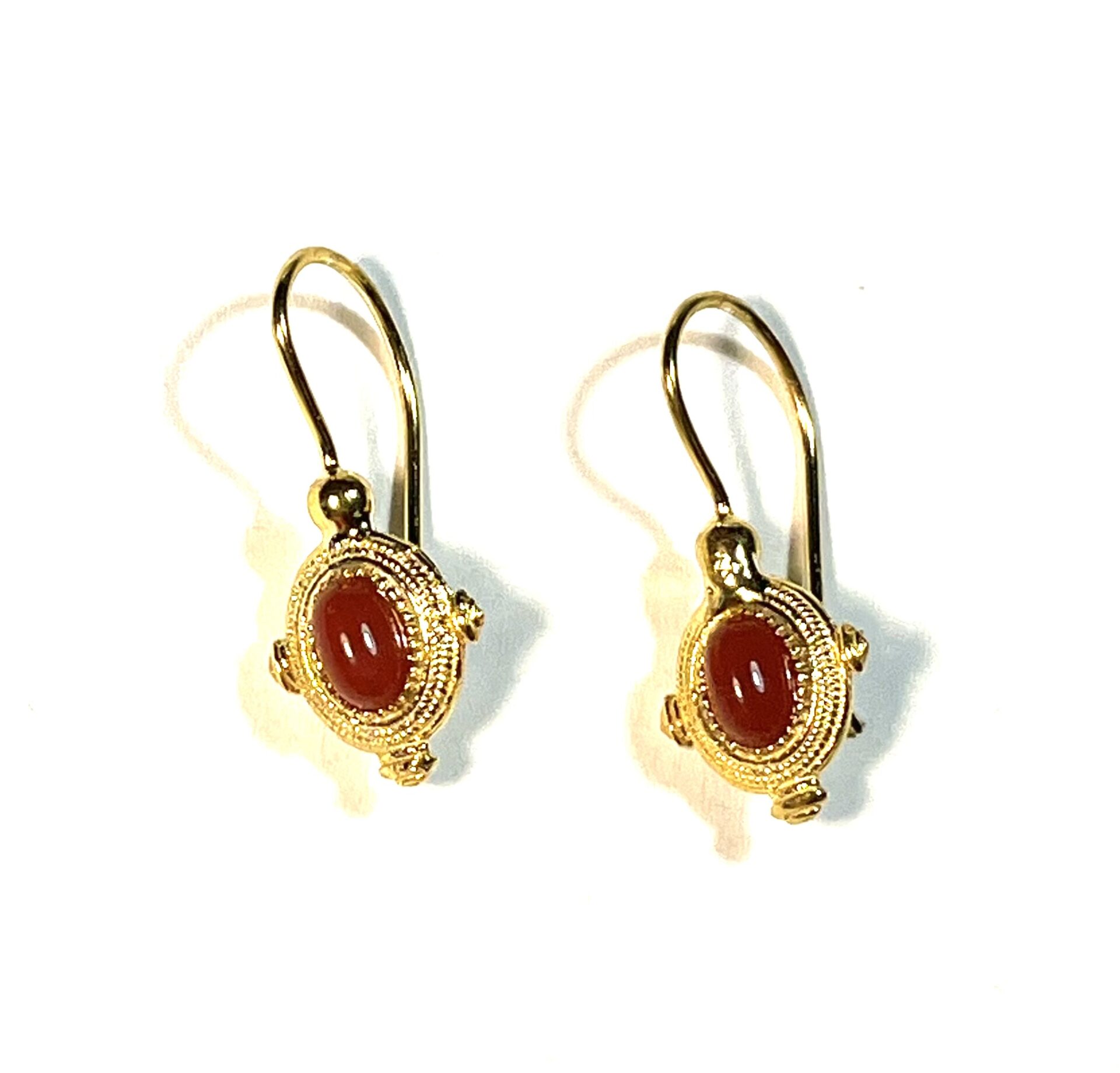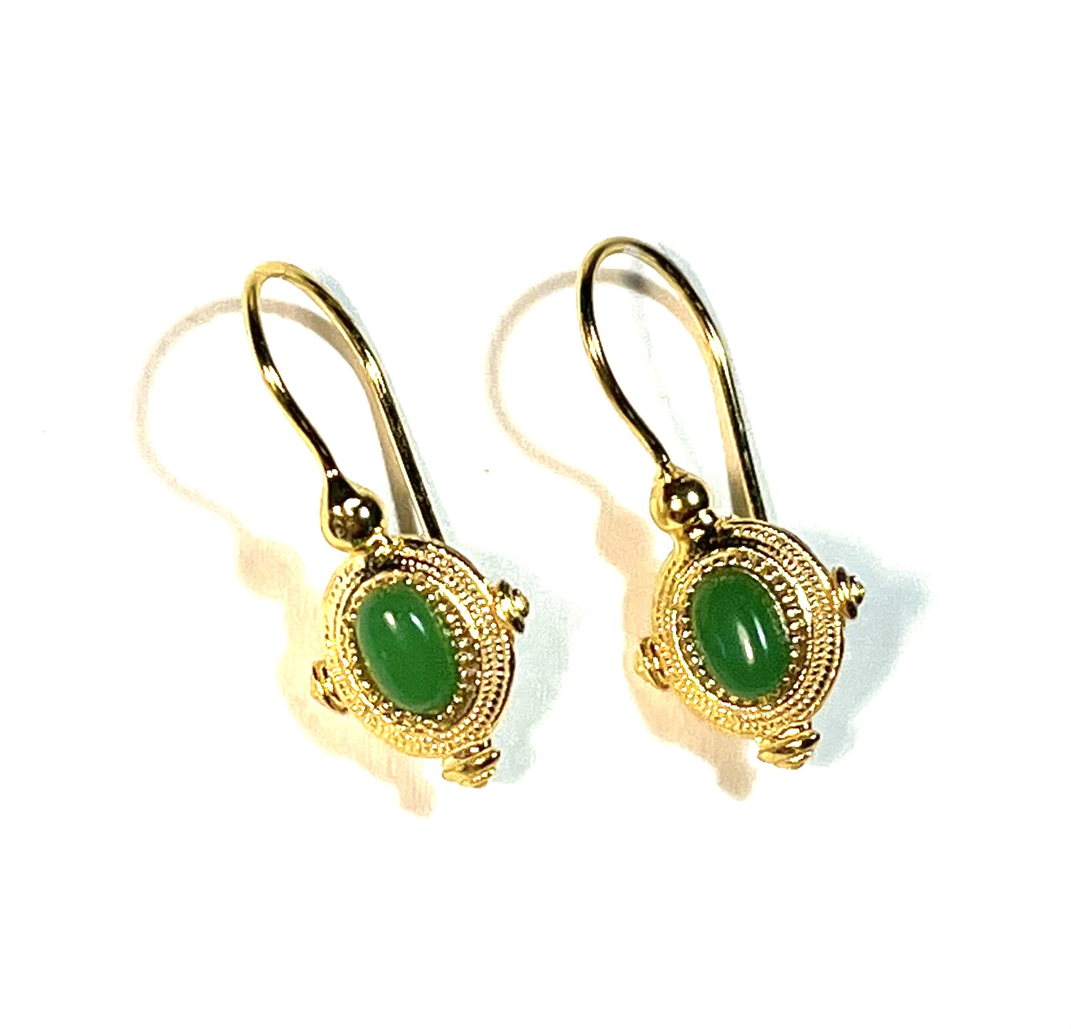 Hook earring in 925 sterling silverplaccato 18k gold. questo hook earring presenta uno scudo oval ispirato allo stile antique, minuziosamente lavorato for esaltare ogni dettaglio. al centro, una stone incastonata cattura la luce and diventa il punto focale del design, donando luminosità and raffinatezza. un gioiello dal fascino without tempo, che unisce lavorazione handmade and stile elegante.