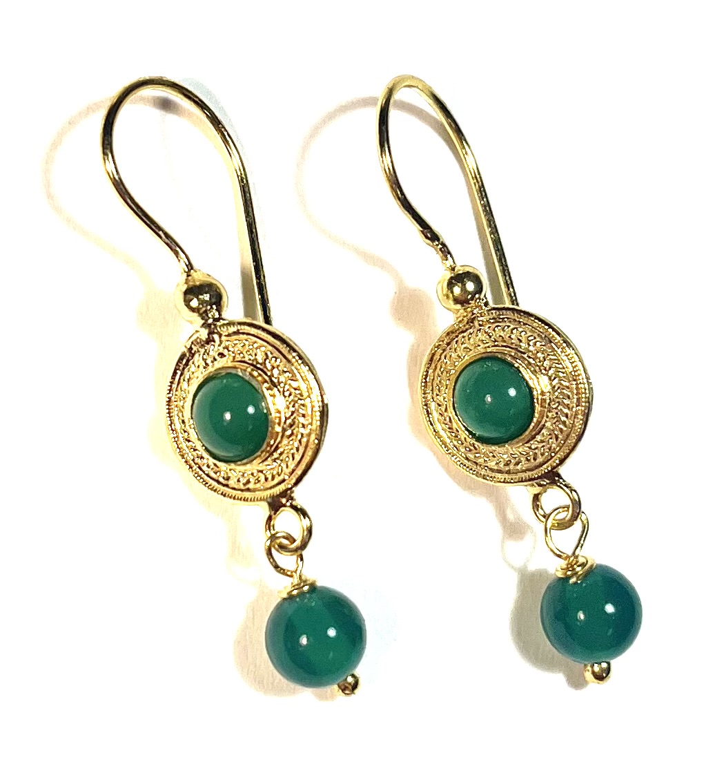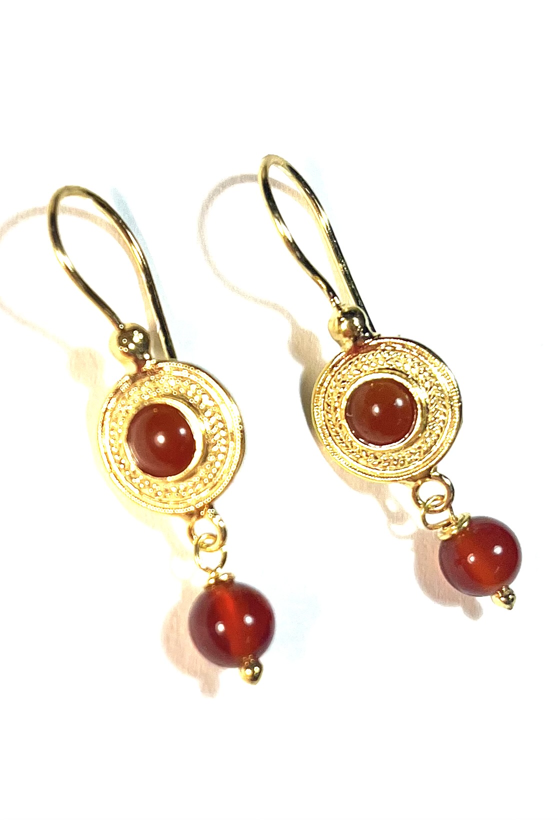 Hook earring in 925 sterling silverplaccato 18k gold. earrings composti from uno scudo finemente lavorato, che evoca forza and raffinatezza. al centro, una stone luminosa esalta la forma and cattura lo sguardo, donando luce and carattere. completa il design una semi-precious stone montata a nodino, che aggiunge movimento and armonia, rendendo il gioiello versatile and perfetto for ogni occasione.