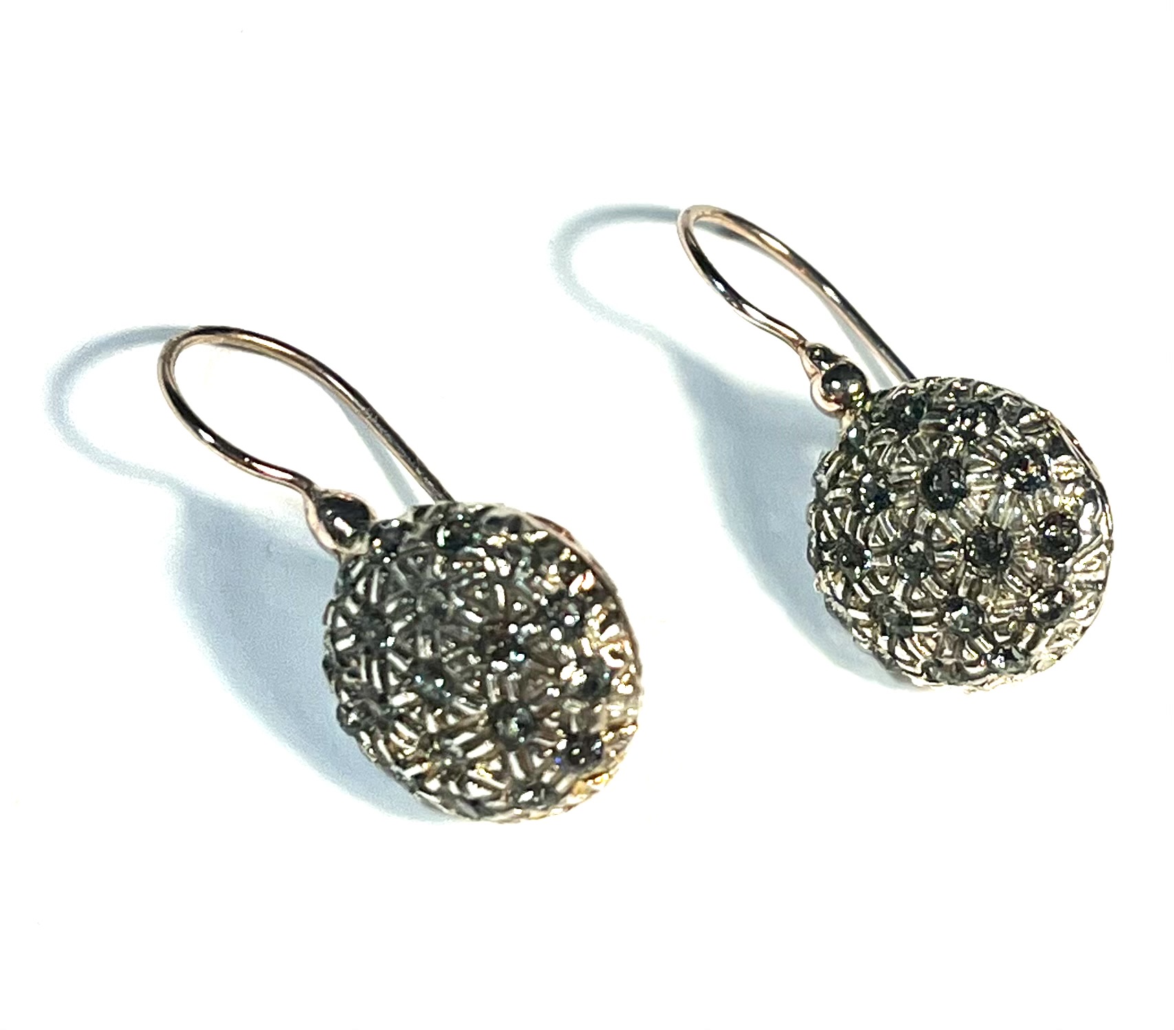 Hook earring in 925 sterling silverplaccato gold rosè 18 kt, with swarowski fumè. questo raffinato earring in silver dallo stile antique è un omaggio alla bellezza del passato reinterpretata in chiave moderna. i cristalli swarovski fumé incastonati nella parte frontale richiamano le iconiche rosette delle nonne, simboli of un’eleganza intramontabile. la luce che si rifrange dalle stones dona profondità, carattere and una luminosità discreta ma avvolgente a chi lo indossa. from indossare with fierezza ad eventi speciali o for aggiungere un tocco sofisticato anche agli outfit più semplici.