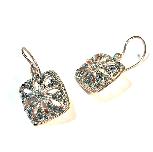 Hook earring in 925 sterling silverplaccato gold rosè 18 kt with swarowski fumè. questo raffinato earring in silver dallo stile antique è un omaggio alla bellezza del passato reinterpretata in chiave moderna. i cristalli swarovski fumé incastonati nella parte frontale richiamano le iconiche rosette delle nonne, simboli of un’eleganza intramontabile. la luce che si rifrange dalle stones dona profondità, carattere and una luminosità discreta ma avvolgente a chi lo indossa. from indossare with fierezza ad eventi speciali o for aggiungere un tocco sofisticato anche agli outfit più semplici.