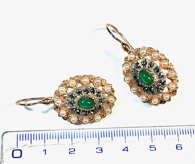 Hook earring in 925 sterling silverplaccato gold rosè 18 kt with micro pearls, swarowski and agate green.