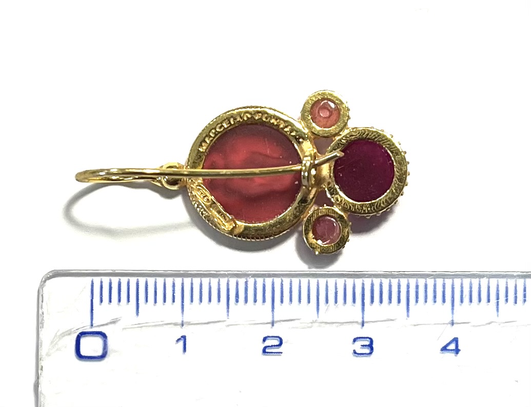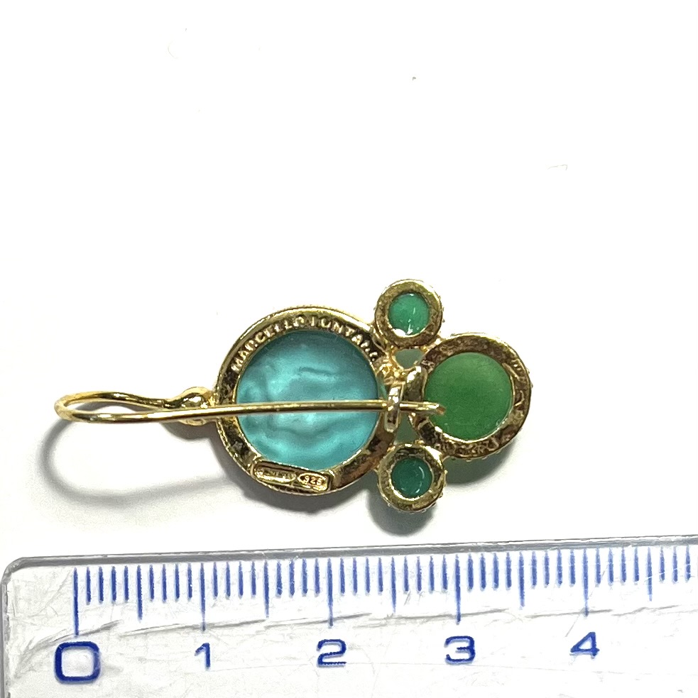 Hook earring with glass paste in 925 sterling silver/°° 18k gold plated. earring with glass paste raffigurante i gemelli castore and polluce, i mitici dioscuri, figli of zeus and leda. simboli of fratellanza, forza and lealtà, erano noti for le loro gesta eroiche: castore, abile domatore of cavalli, and polluce, maestro nel pugilato. la parte inferiore presenta tre castoni che impreziosiscono l’earring, donandogli originalità and raffinatezza. le loro tonalità si armonizzano with il color della glass paste, esaltandone l’eleganza.