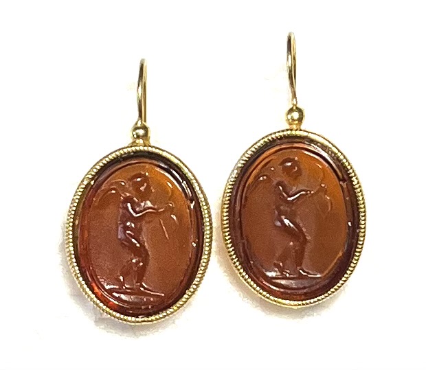 earring with glass paste raffigurante eros, dio greco dell’amore and del desiderio, noto in epoca romana come cupido.
