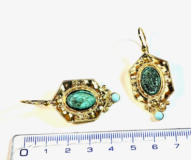 Hook earring in 925 sterling silverplaccato 18k gold, with antiqued bronze coin.