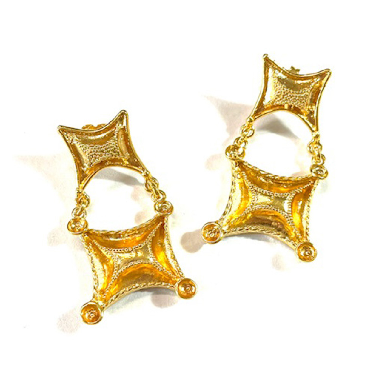 Stud earring in 925 sterling silver/°° 18k gold plated. earring in stile etrusco, lavorato with la tecnica della granulazione, che esalta le forme and i volumi grazie al contrasto of luci and ombre. un design raffinato che richiama l’antica arte orafa etrusca, creando un effetto visivo unico and sofisticato.