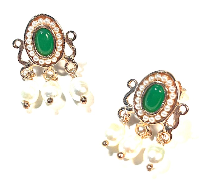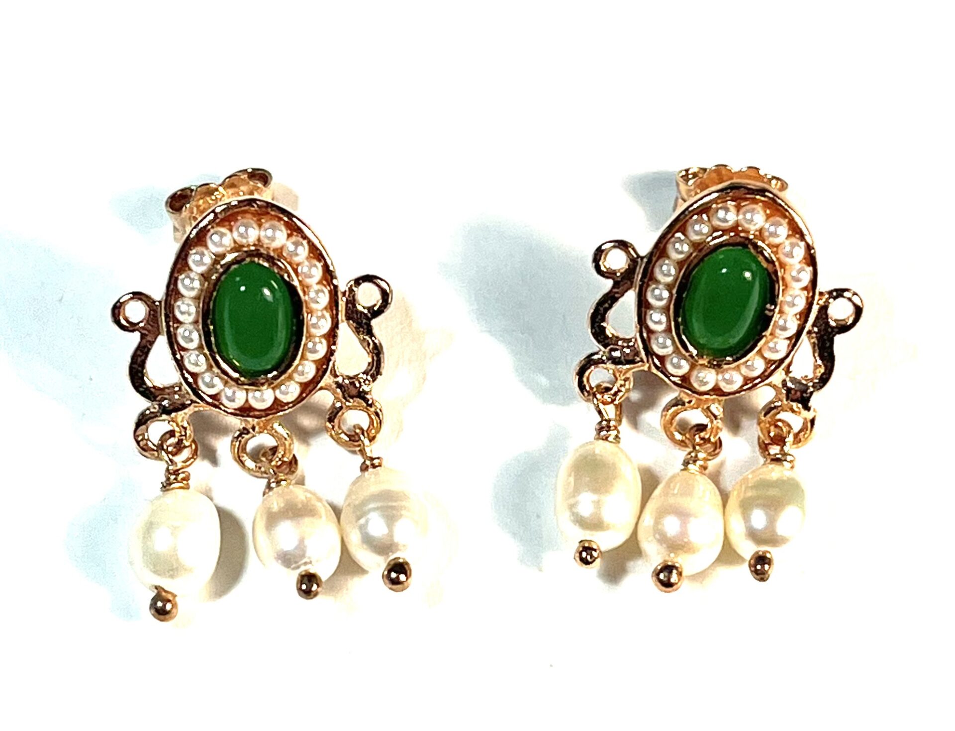 Stud earring in 925 sterling silverplaccato gold rosè 18 kt with micro pearls, agate green and pearls of fiume.