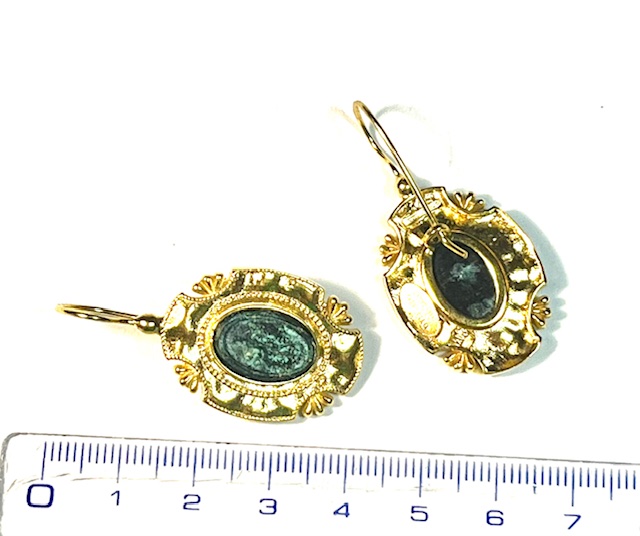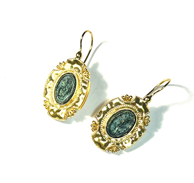 Earring in 925 sterling silverplaccato 18k gold with antiqued bronze coin. dal fascino antique and dall’eleganza without tempo, questi earrings in silver si distinguono for il loro design ricercato and fortemente simbolico. al centro, uno scudo finemente lavorato racchiude una moneta anticata, omaggio alla storia and alla forza degli eroi mitologici. la cesellatura handmade dello scudo dona profondità and rilievo, mentre due giri of filo ritorto ne incorniciano i contorni with stile classico and deciso. ideale for chi ama i dettagli unici and i gioielli che raccontano storie, questi earring sono un accessorio distintivo, capace of unire tradizione and modernità in un solo gesto.