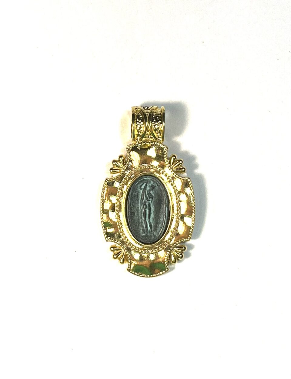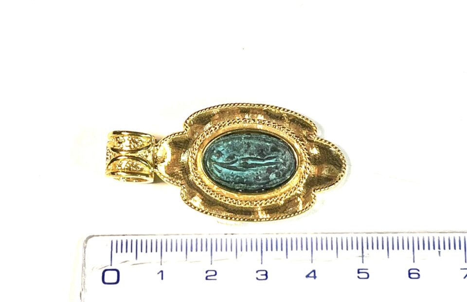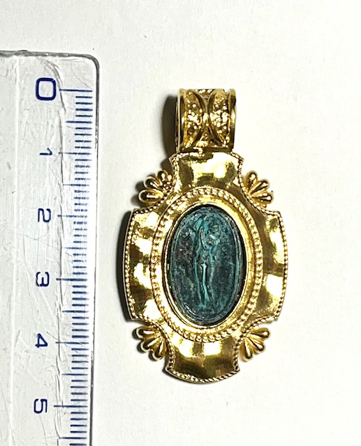 Pendant in 925 sterling silverplaccato 18k gold with antiqued bronze coin.