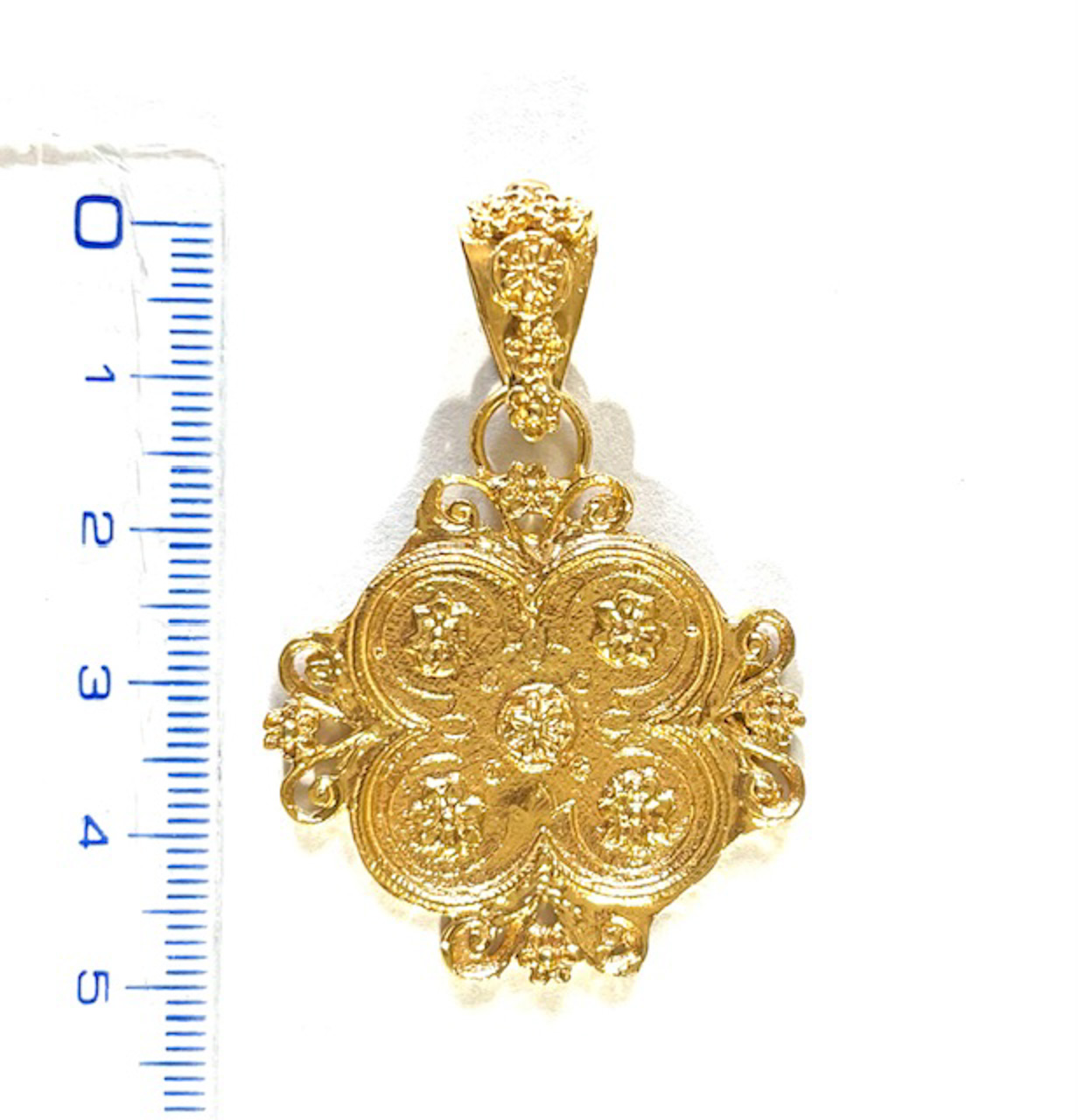 Pendant in 925 sterling silver/°° 18k gold plated. elegante pendant ispirato all’arte etrusca, caratterizzato from motivi floreali che richiamano i fregi decorativi tipici of questa antica civiltà. questi elementi, presenti nelle loro opere d’arte and nell’oreficeria, simboleggiano armonia, connessione with la natura and spiritualità. un gioiello raffinato, perfetto for chi ama la storia and l’eleganza without tempo.
