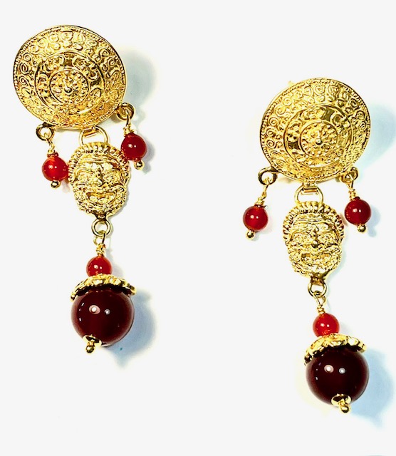 Stud earring in 925 sterling silver/°° 18k gold plated with monete in antiqued bronze.
